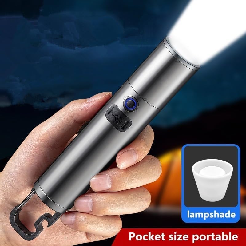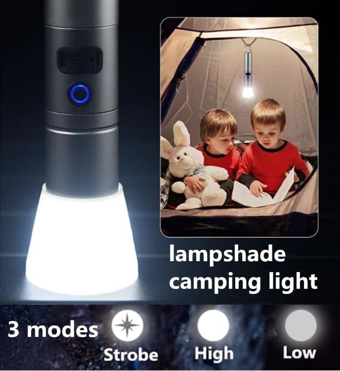 2 in 1 Camping Light & Flashlight: The handheld flashlight comes with a lampshade to make the light softer and can be used as a camping light.The end of the flashlight is designed with a spring hook for easy carrying or hanging.