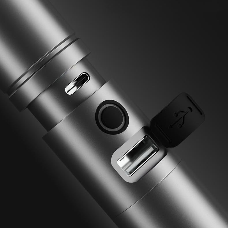 USB Rechargeable: This rechargeable torch light is powered by a rechargeable battery.The working time is up to 3-6 hours.Through USB output design, the flashlight can be used to charge the phone in an emergency.
